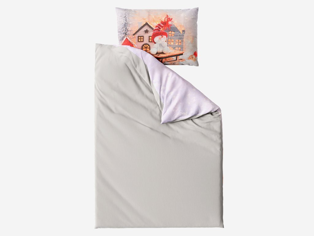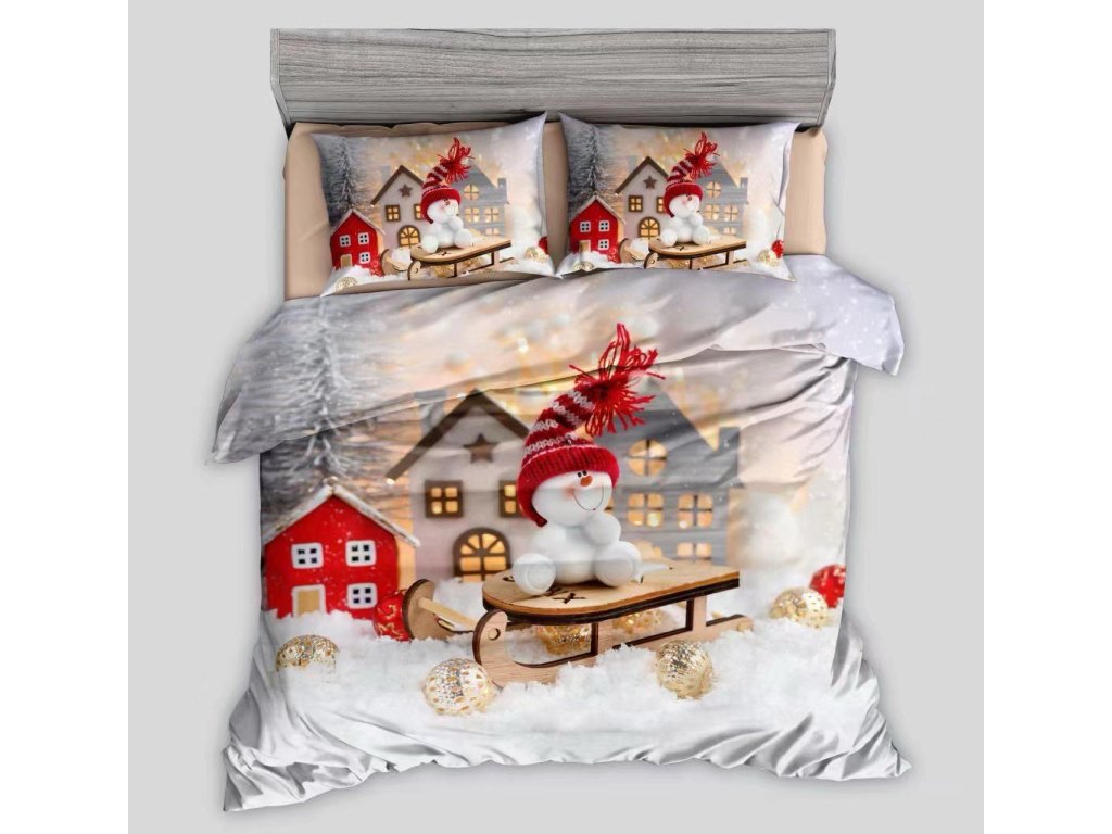 Pościel bawełniana 3D BAŁWAN NA SANKACH szara, 100% bawełna