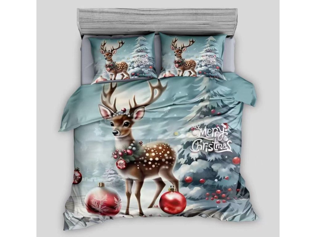 Pościel bawełniana 3D JELEŃ Z OZDOBĄ niebieska, 100% bawełna