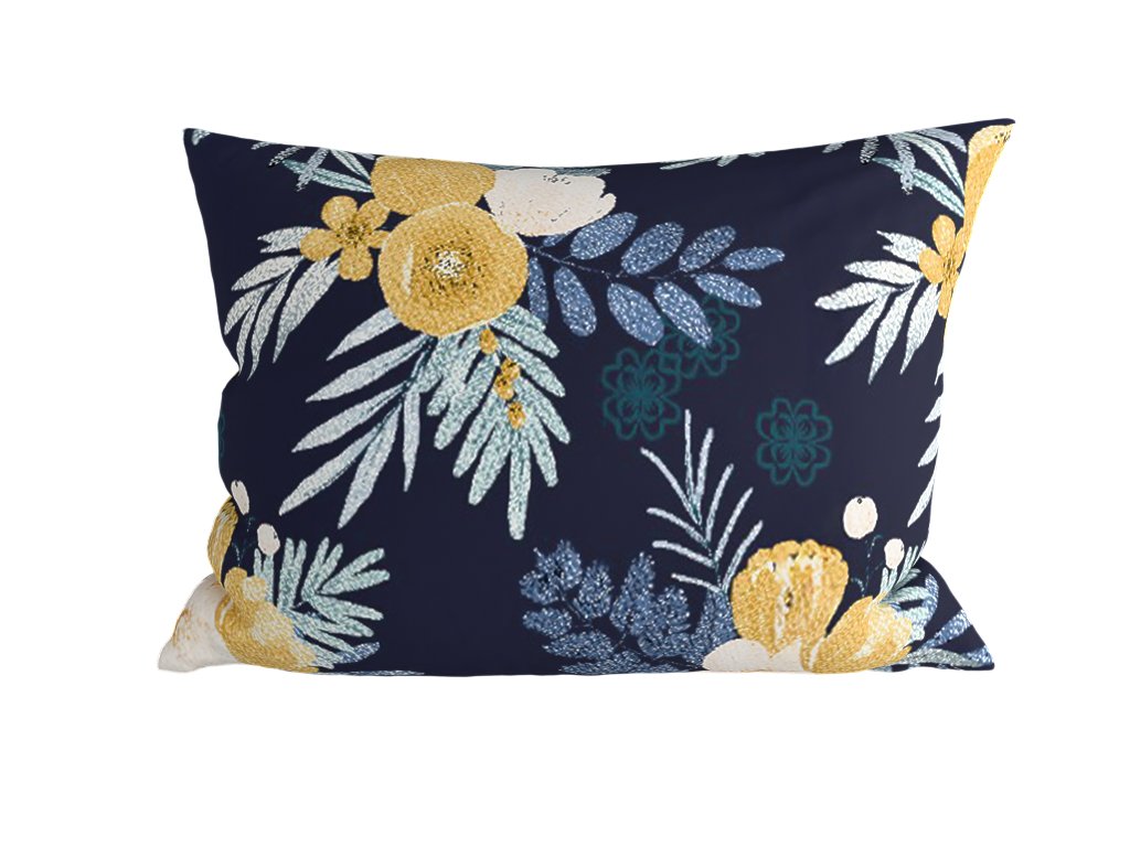 Zestaw 2 sztuk dekoracyjnych poszewek na poduszki z mikrofibry FLOWERISH 50x70 cm, ciemnoniebieski
