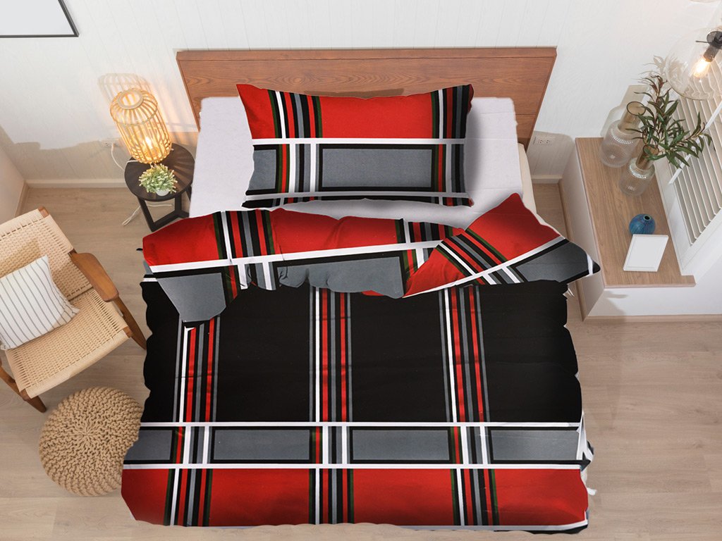 Pościel bawełniana KRATKA czerwona