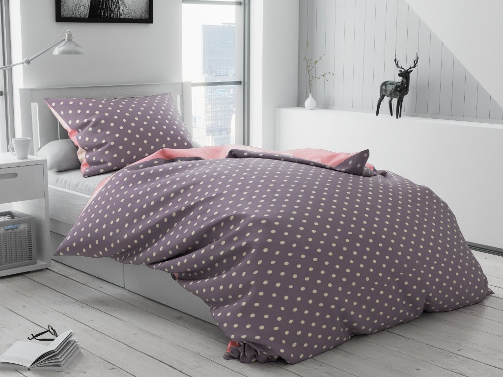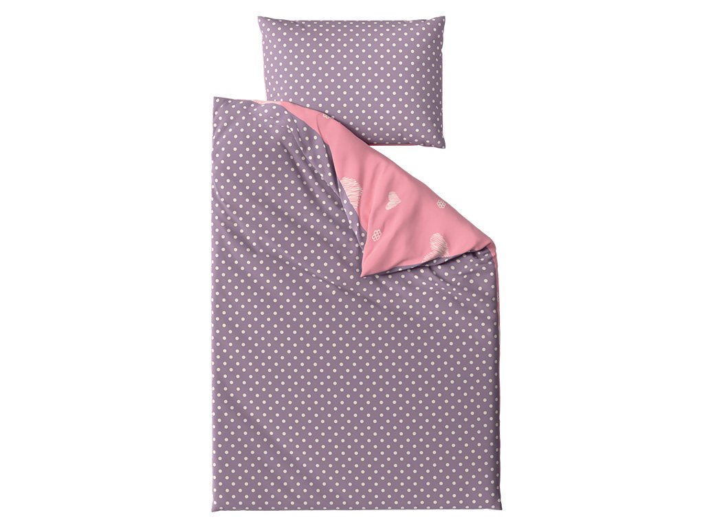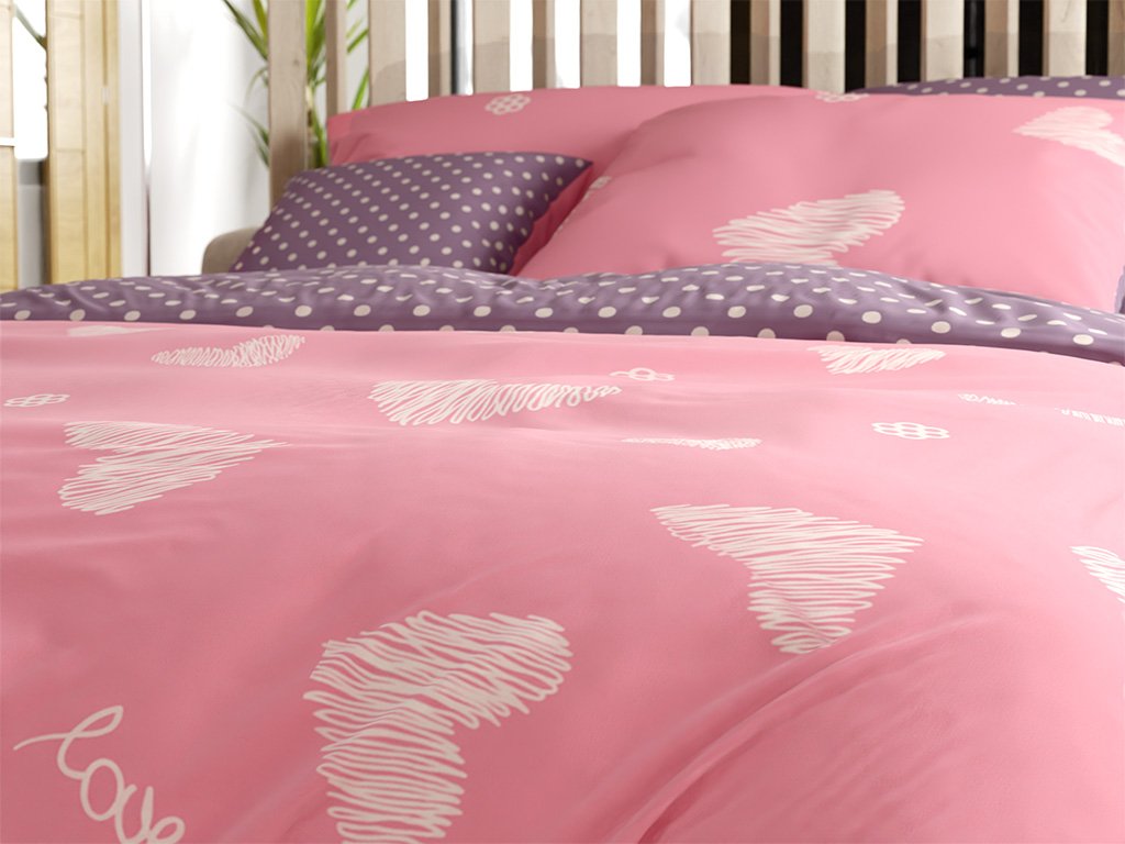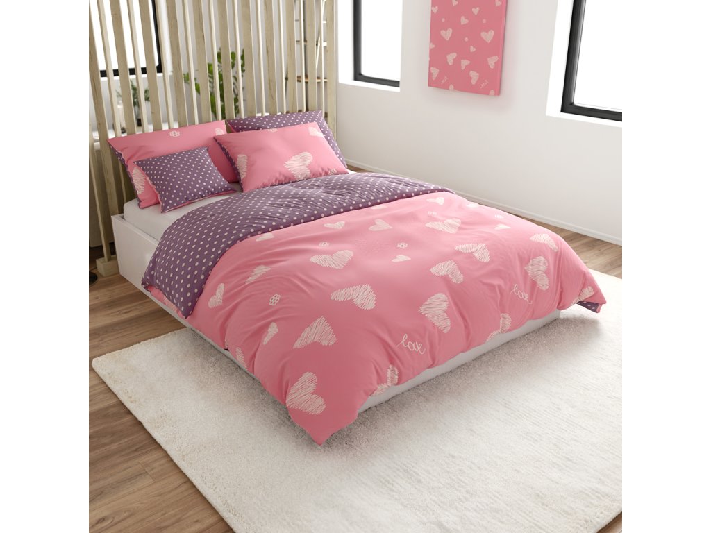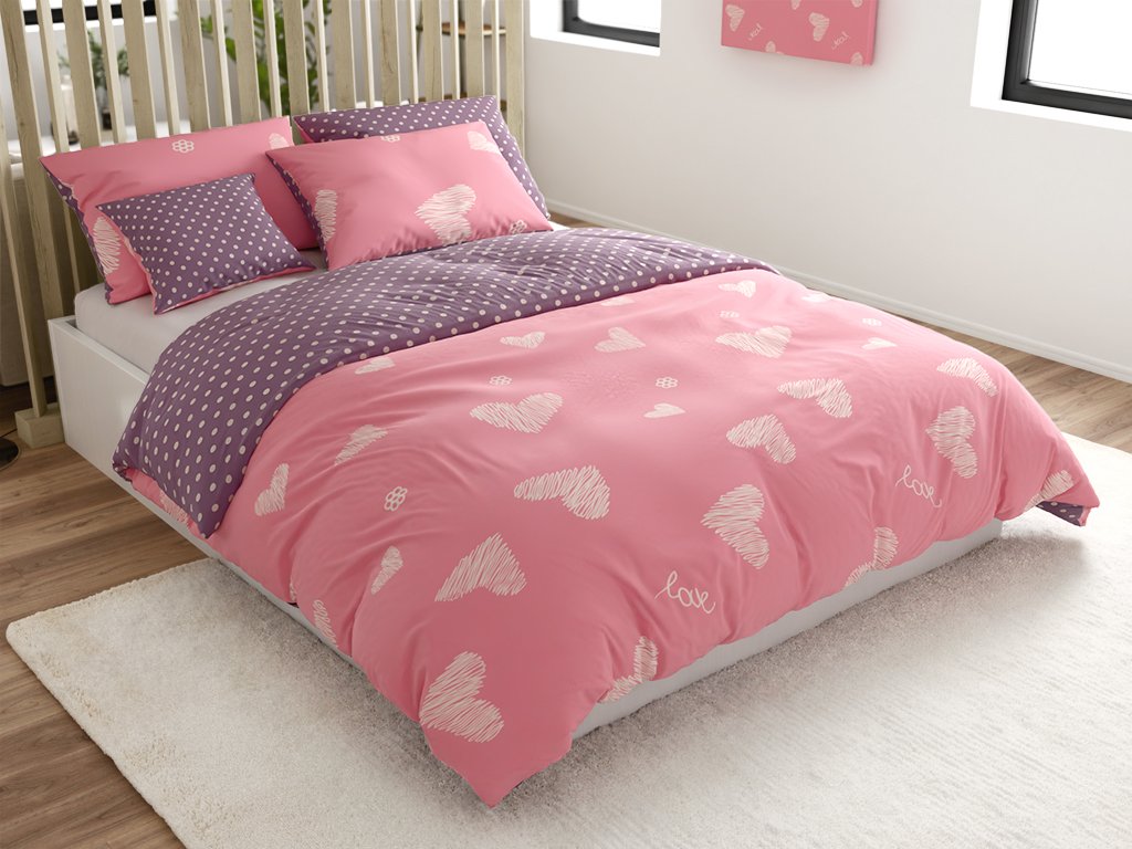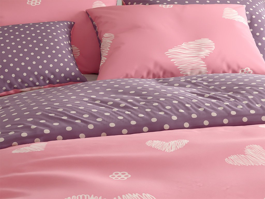 Bawełniana dwustronna pościel SERCA I KROPKI różowa