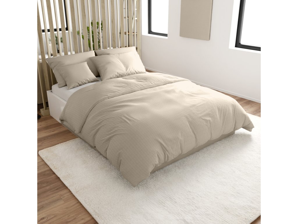 Bawełniana pościel z krepowym wykończeniem LUXERA szaro-brązowa hotelowa kieszeń II.gatunek