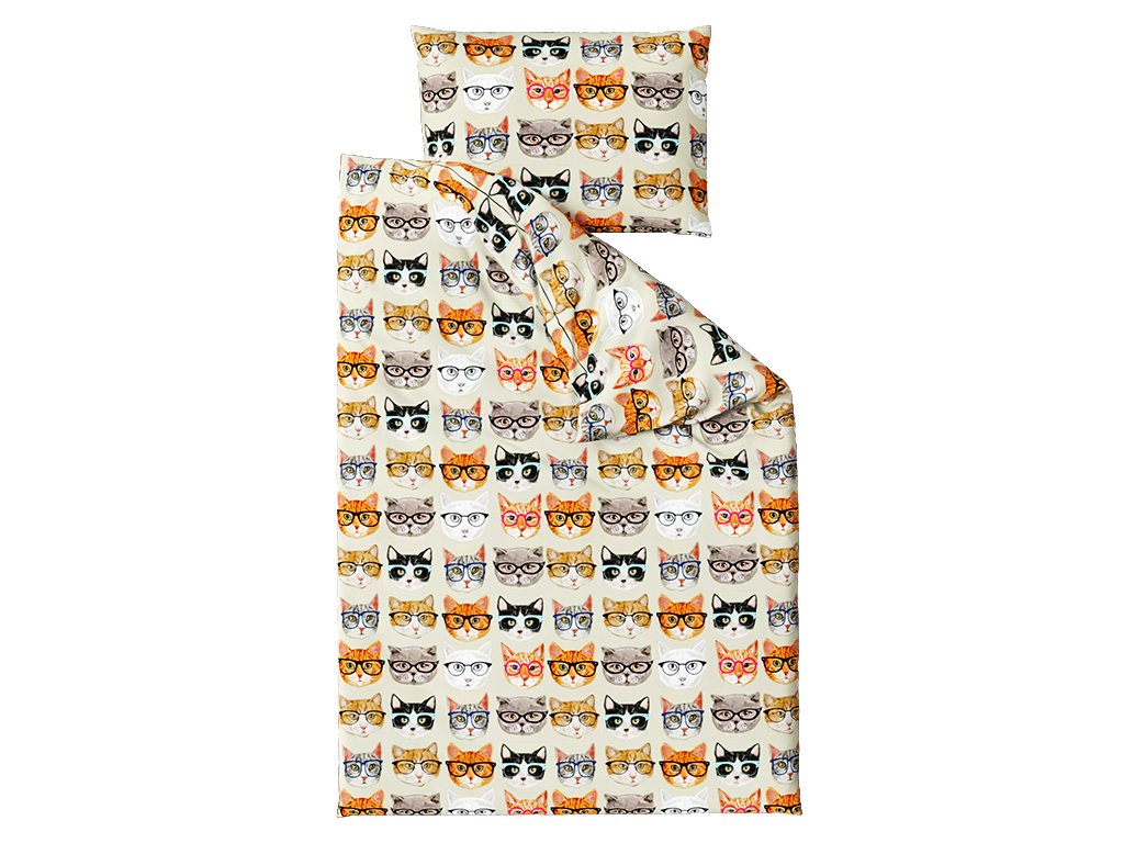 Pościel bawełniana CAT GLASSES beżowa