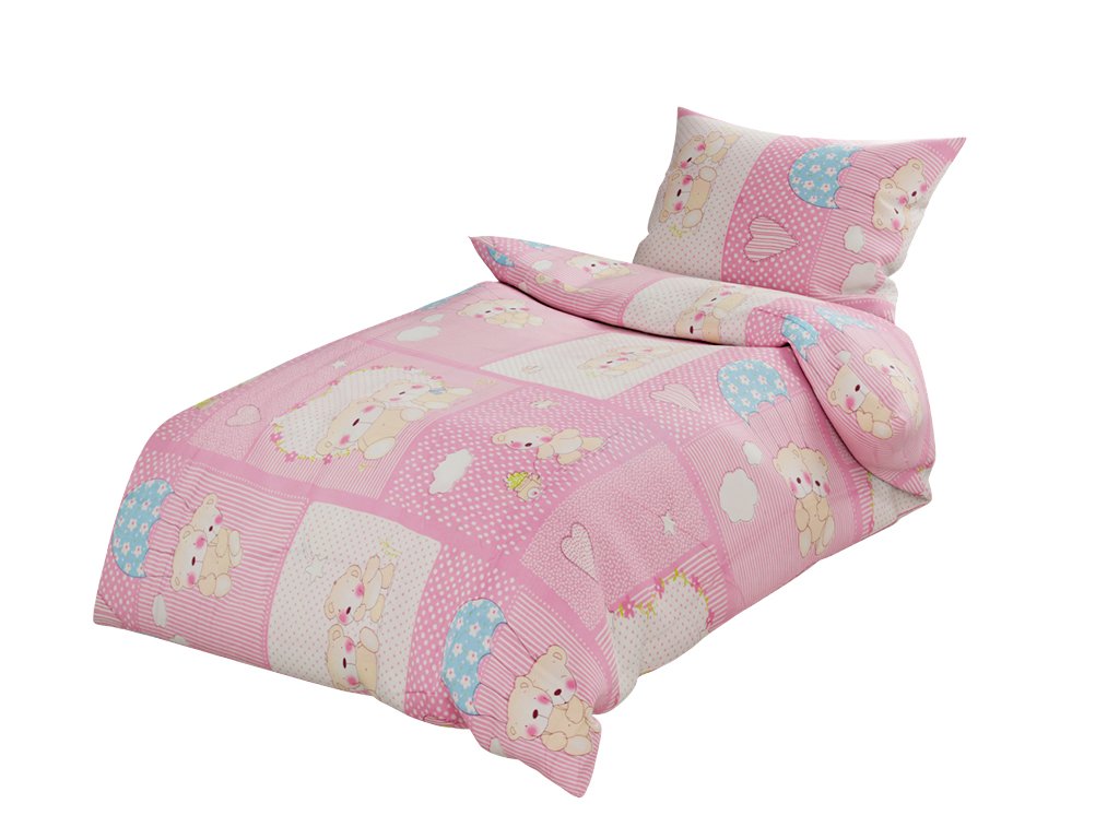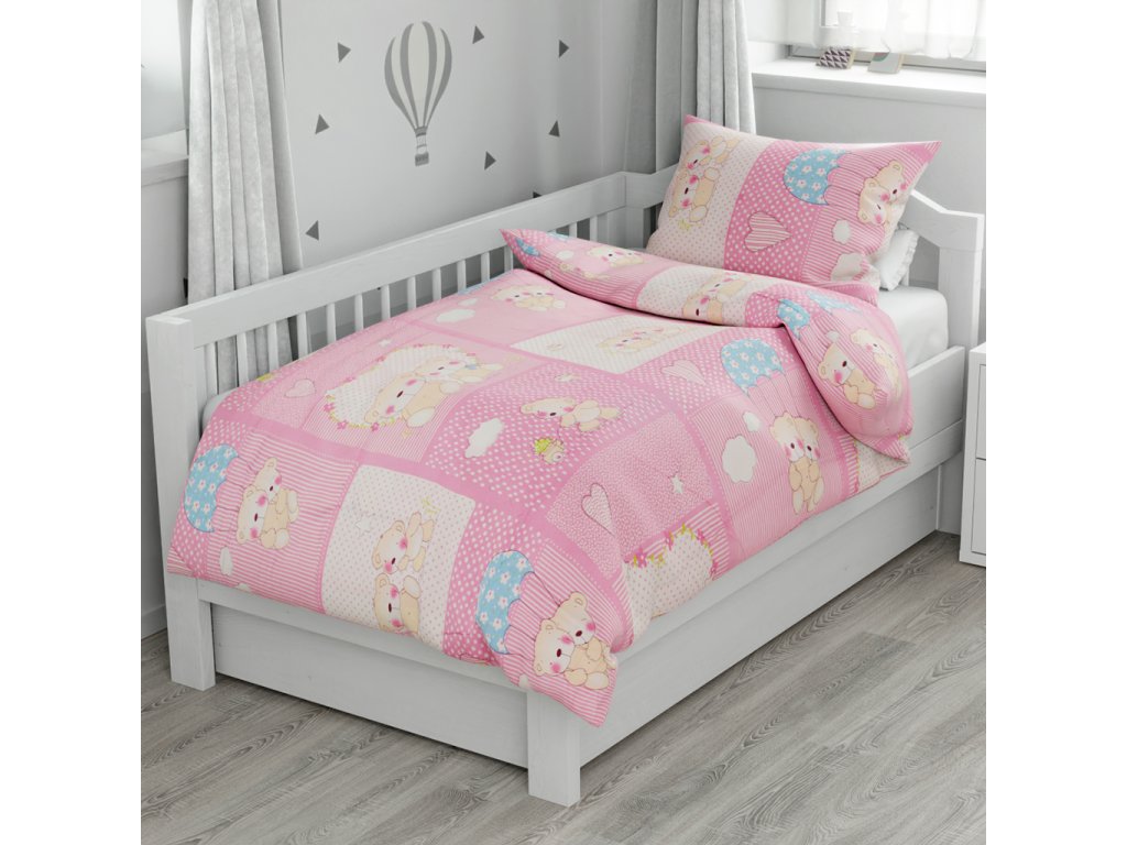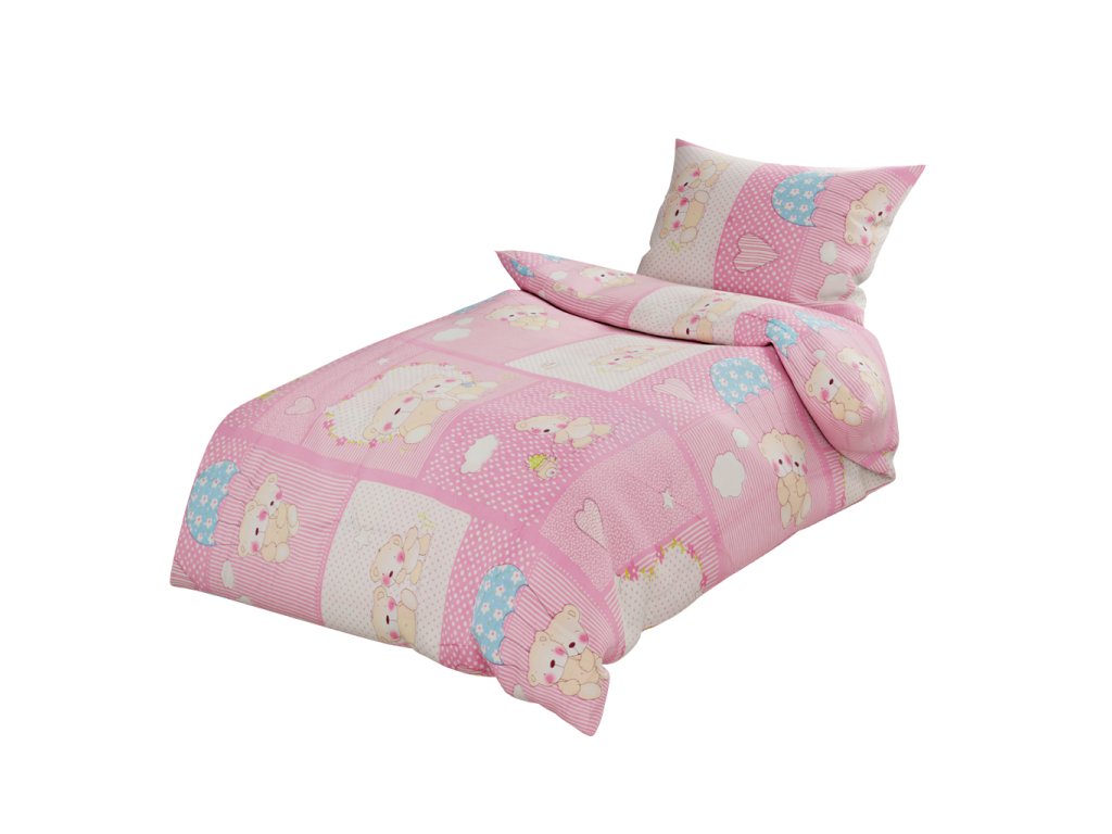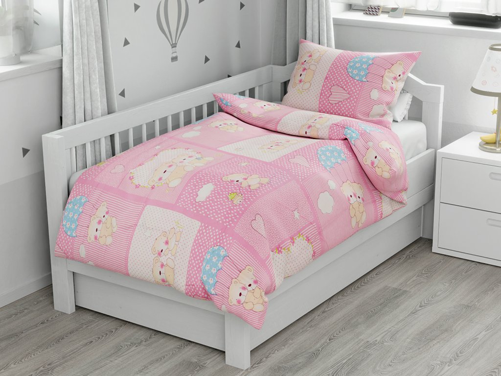 Pościel bawełniana do łóżeczka DWA MISIE różowa