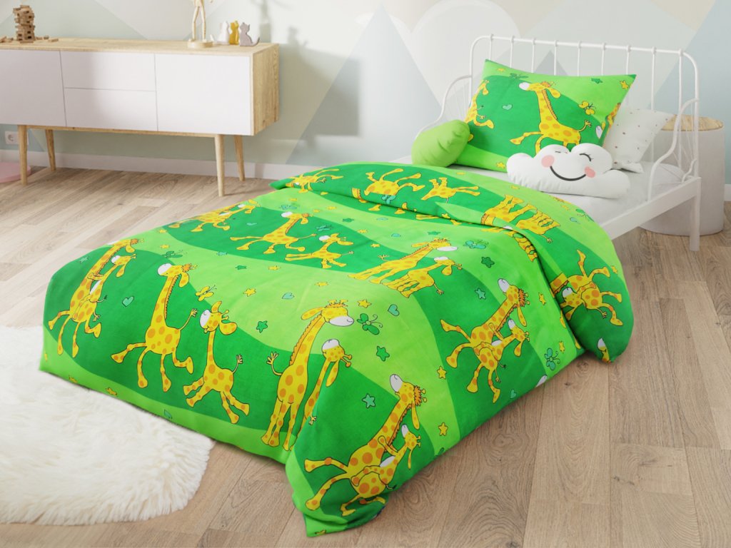 Pościel bawełniana ŻYRAFA zielona