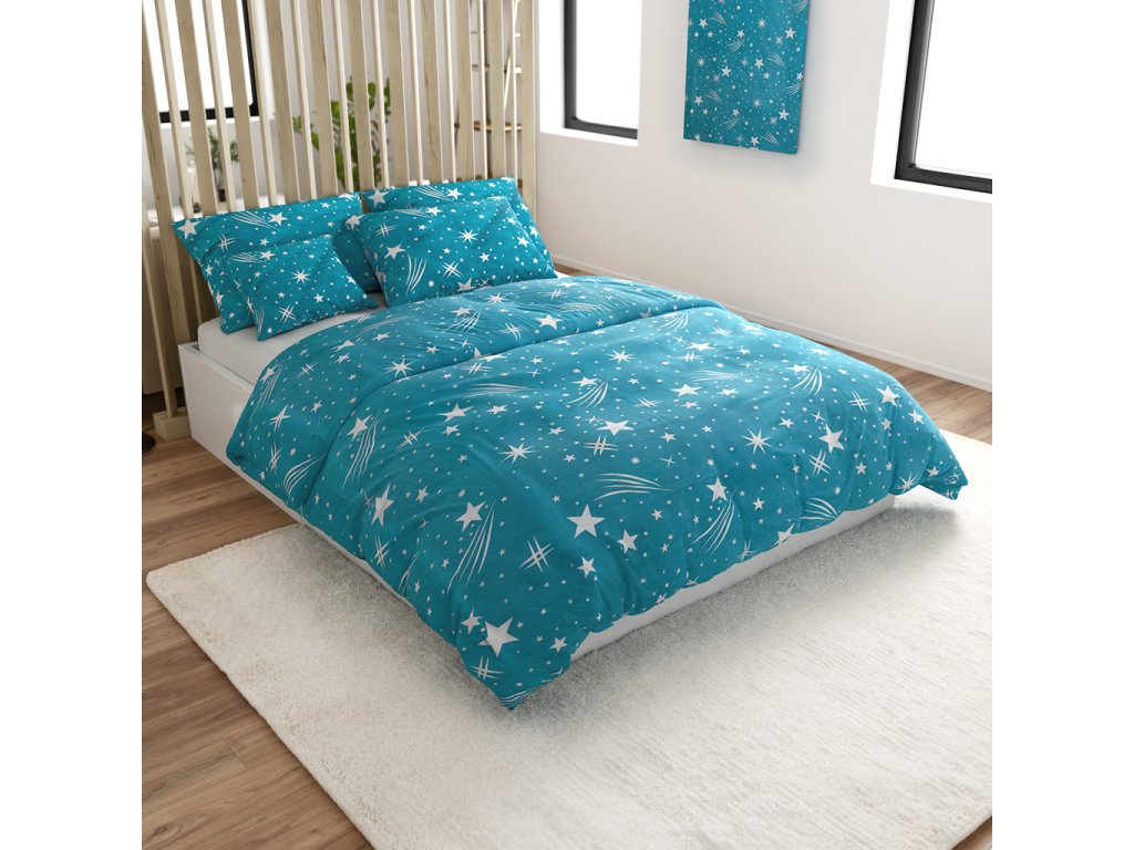 Flanelowa pościel NIGHT SKY turkusowa