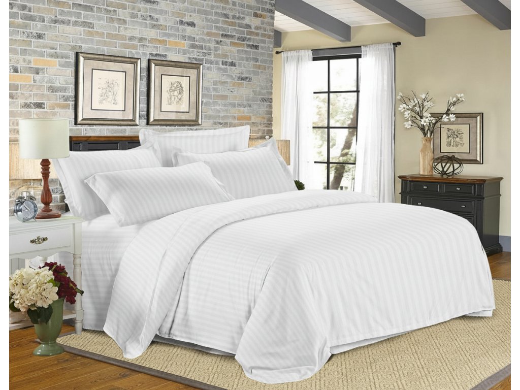 Hotelowa pościel z mikrofibry JASMINE PURE białe - pasek 2 cm, hotelowa kieszeń
