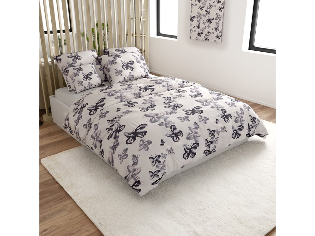 Pościel z mikrofibry BLACK BUTTERFLY kremowa