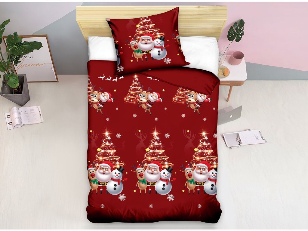 Pościel z mikrofibry MIKOŁAJ, DRZEWO I BAŁWAN czerwona