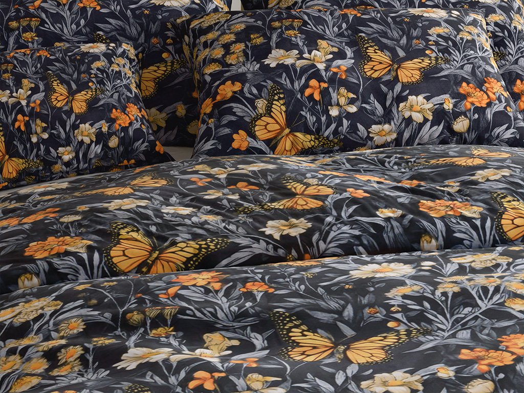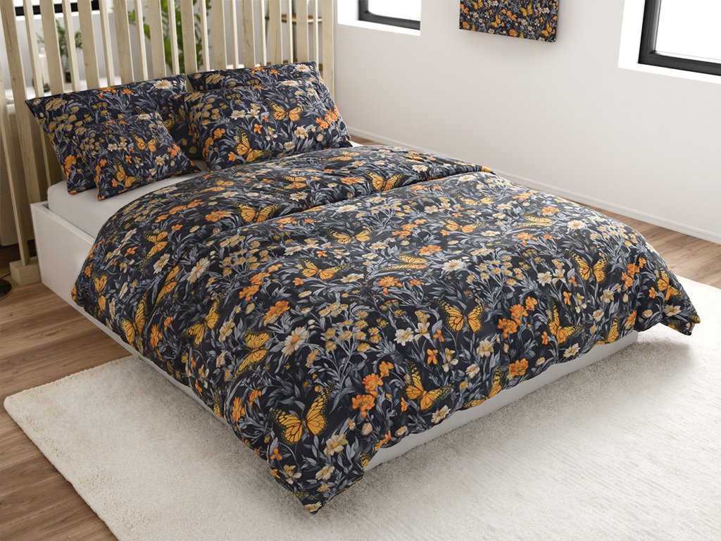 Pościel z mikrowłókna BUTTERFLY GARDEN niebiesko-szara