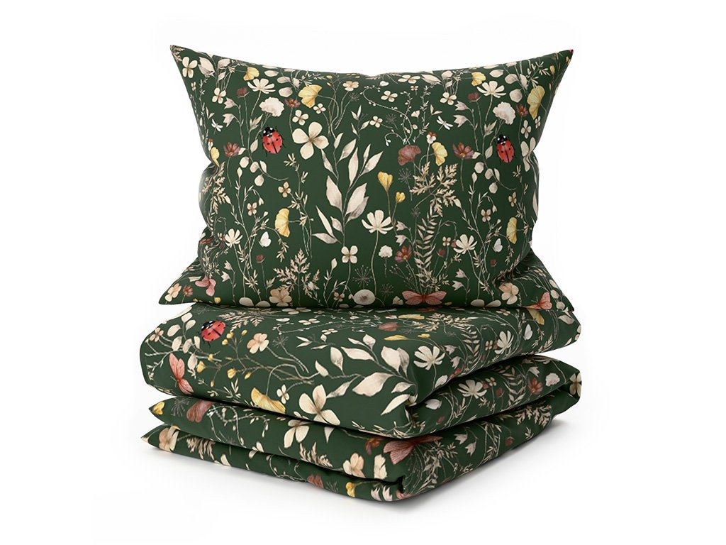 Pościel z mikrowłókna KOLOROWA ŁĄKA ciemnozielona