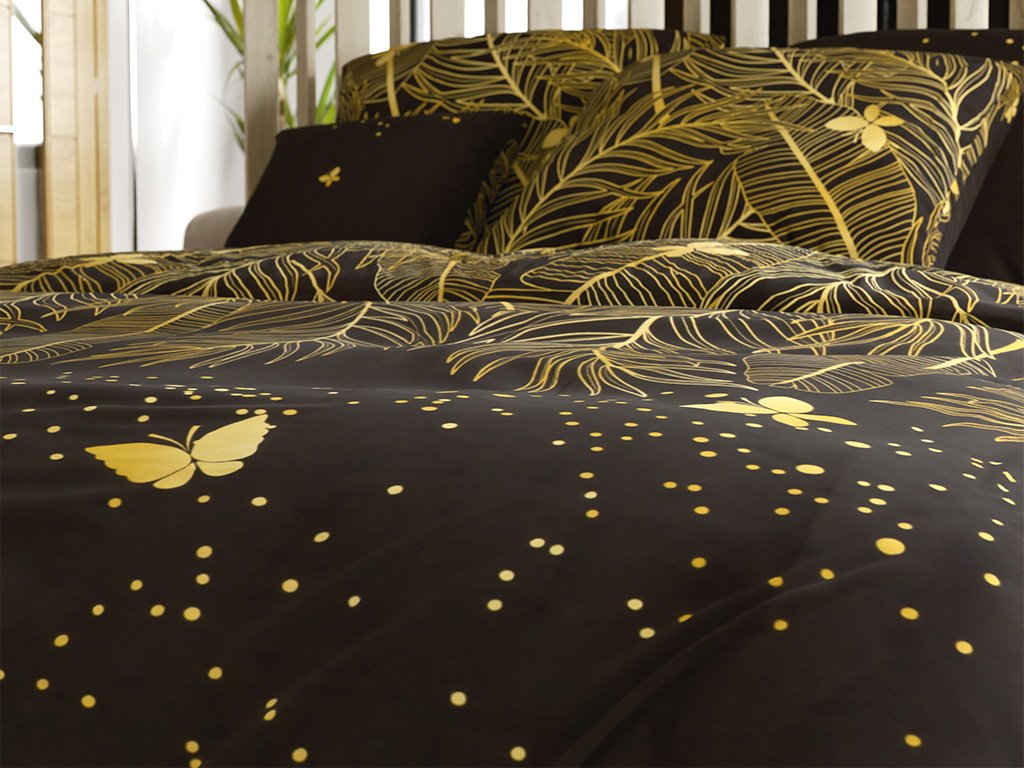 - Nowoczesny wzór ze złotym motywem motyli i liści