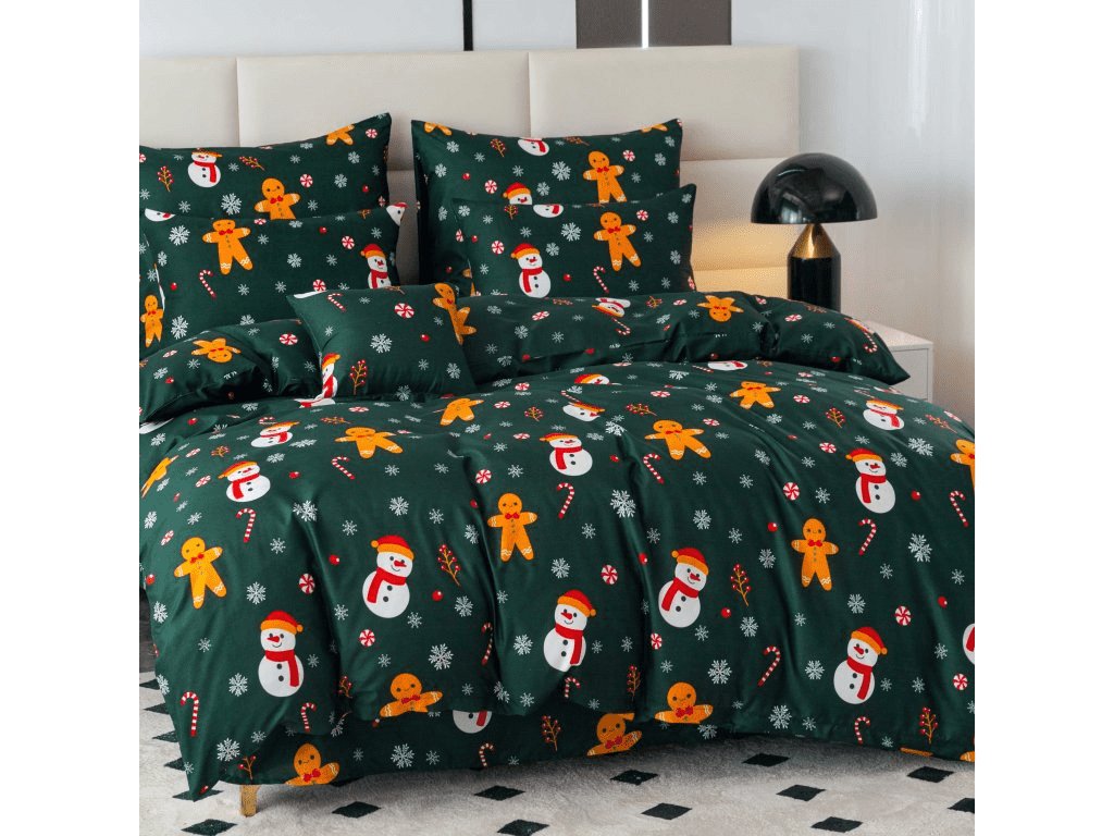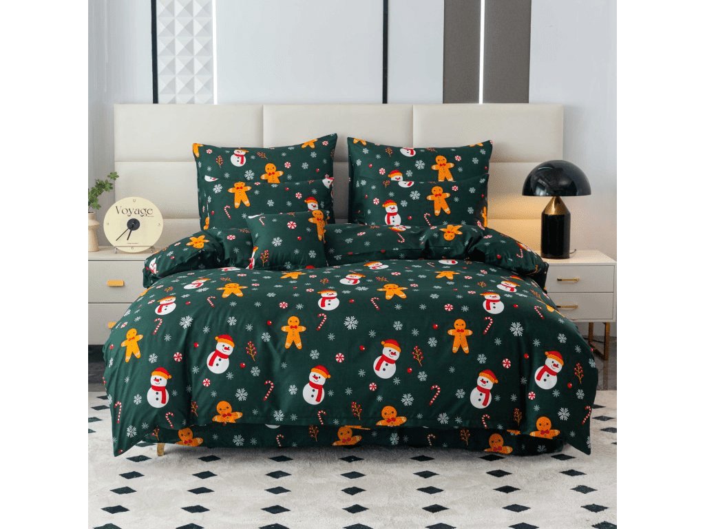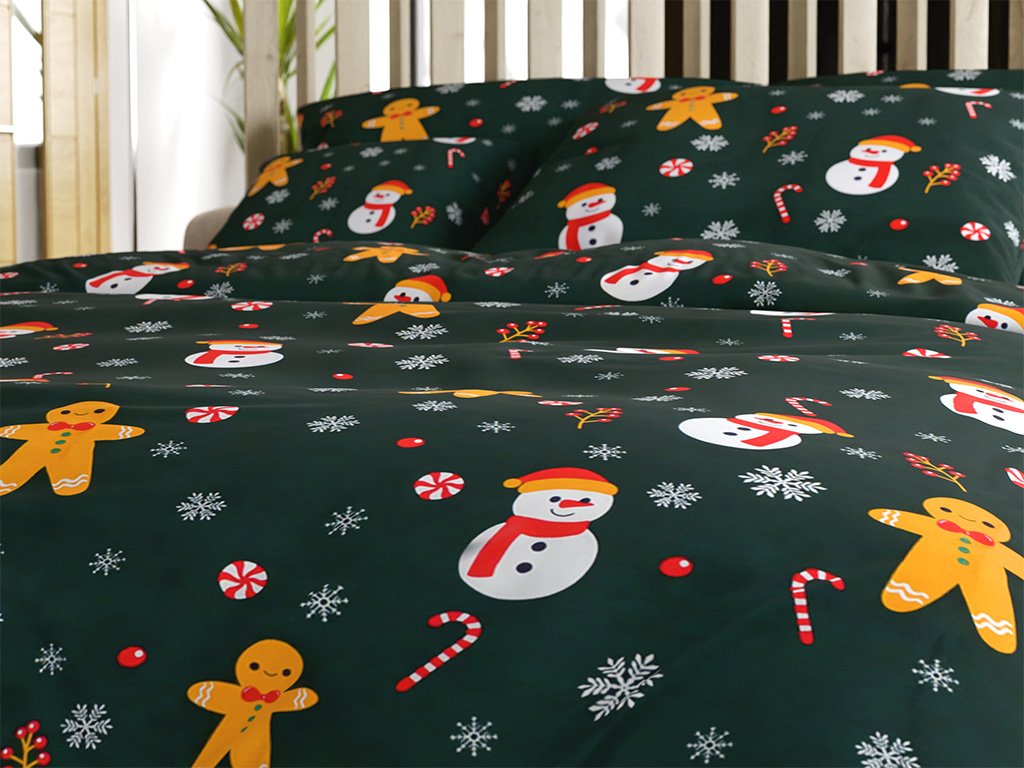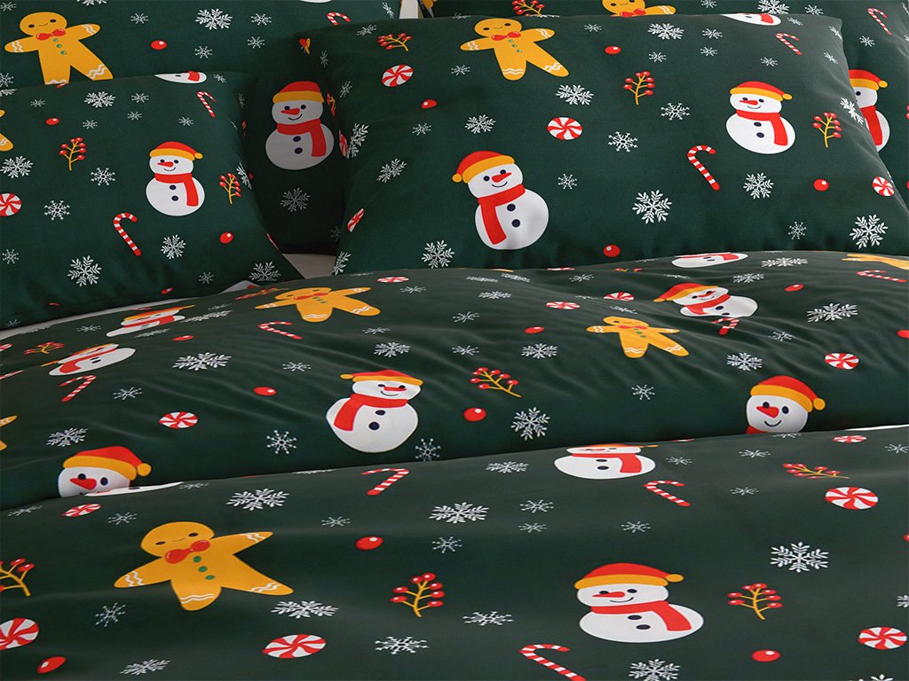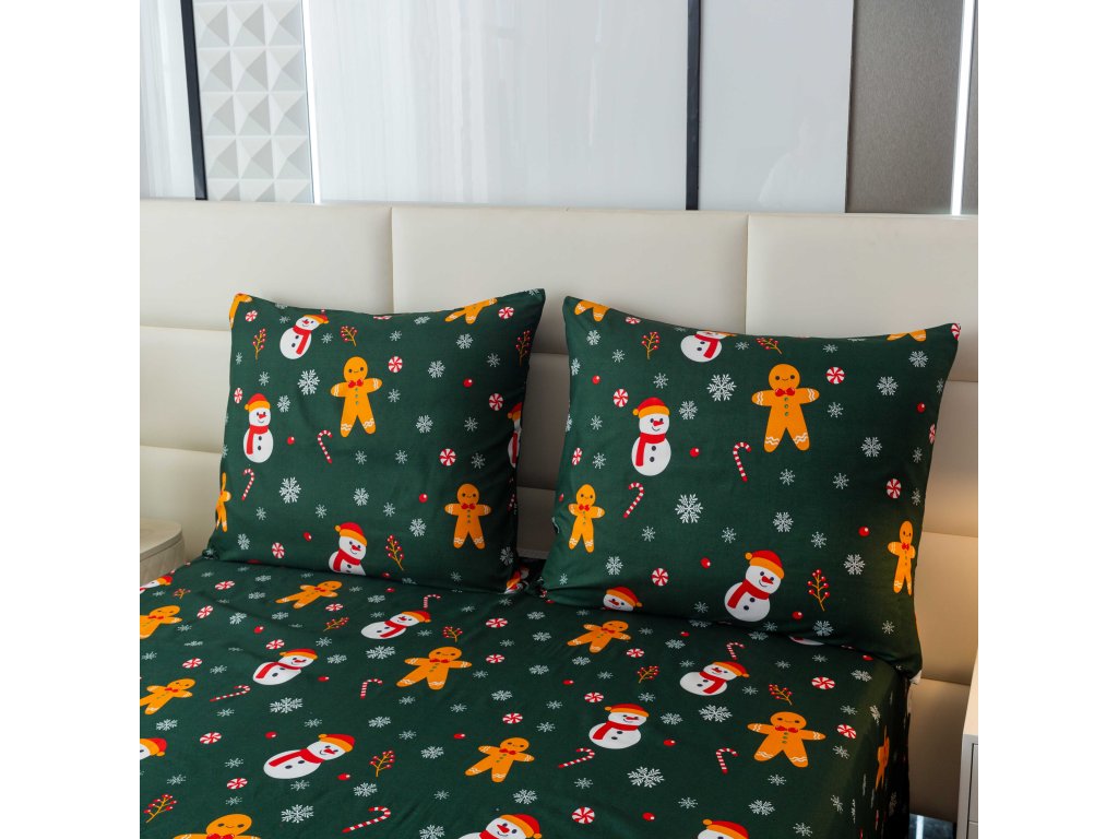 Prześcieradła z mikrofibry SNOWMAN AND GINGERBREAD w kolorze zielonym