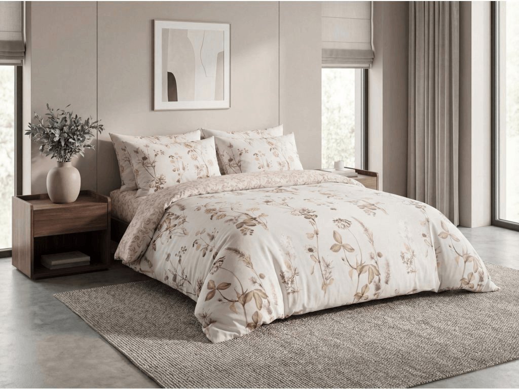 Pościel z mikroflanelu BOTANIQUE kremowo-brązowa