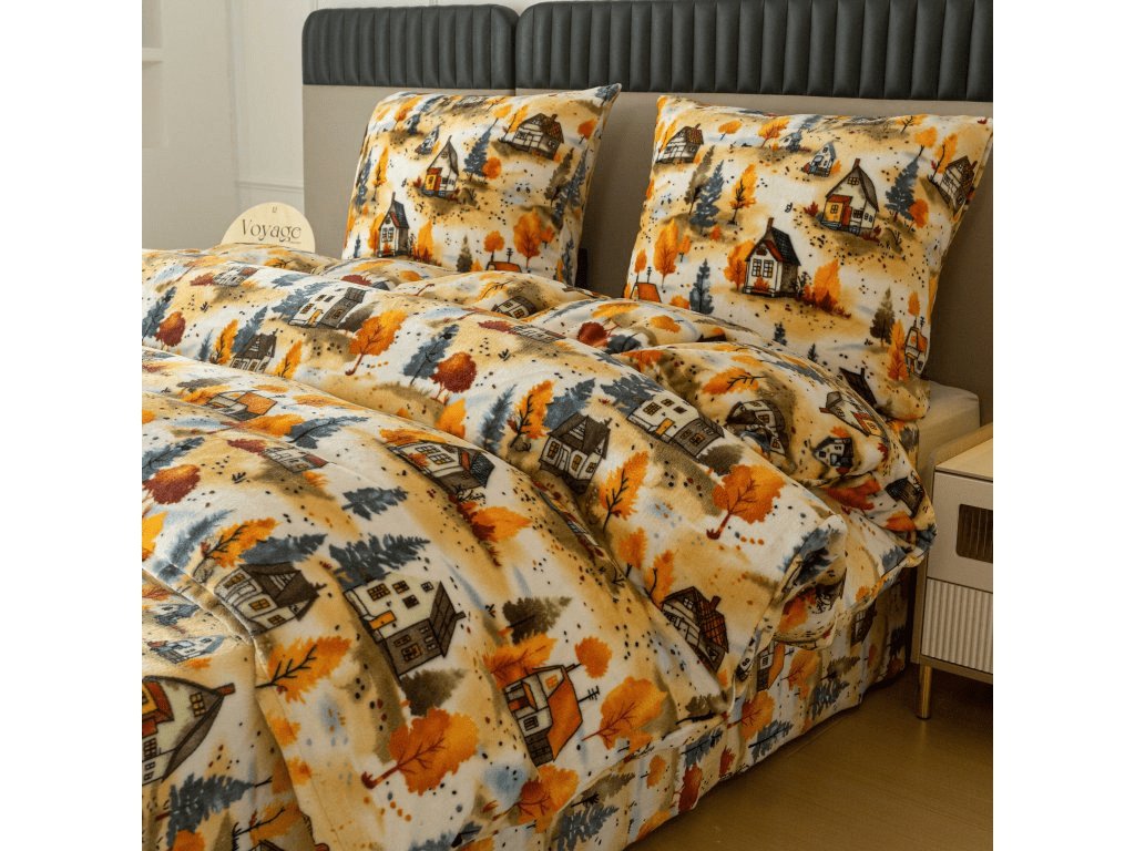 Pościel z mikropluszu AUTUMN VILLAGE kolorowa