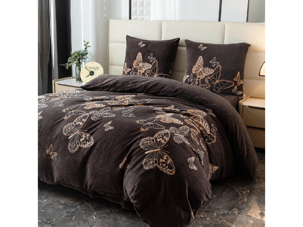 Pościel z mikropluszu BUTTERFLYA brązowa