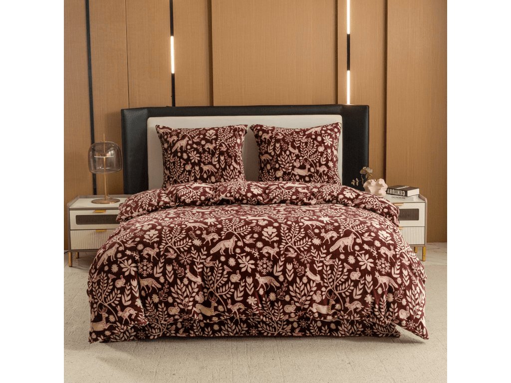 Pościel z mikropluszu FOREST ANIMALS burgund.