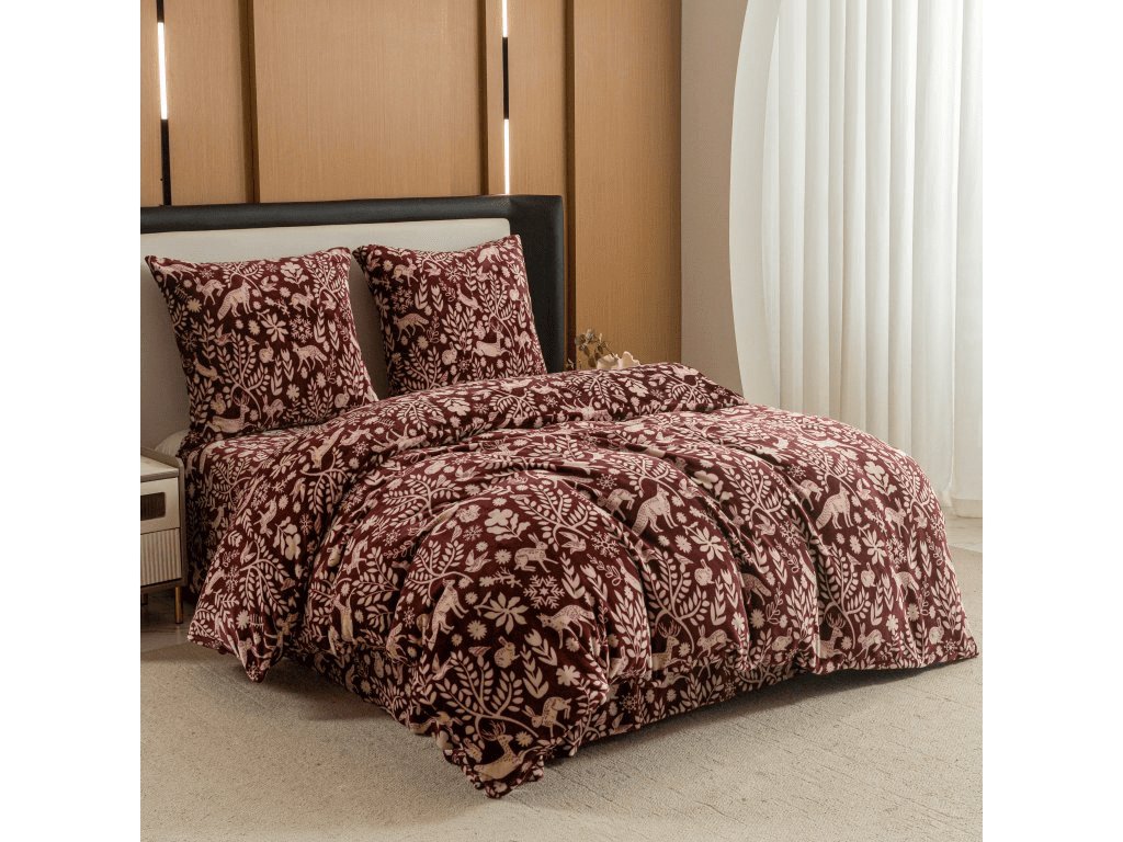 Pościel z mikropluszu FOREST ANIMALS bordowy