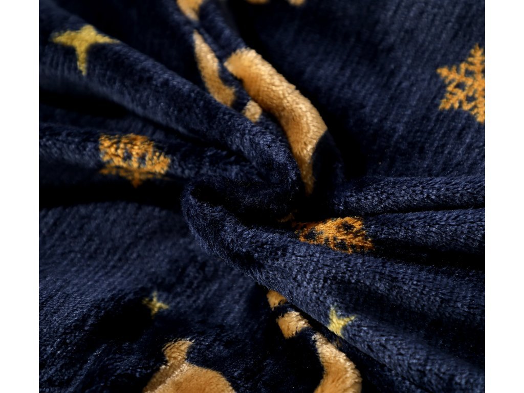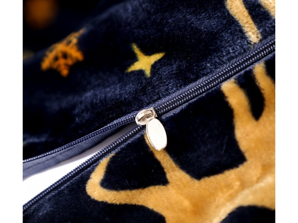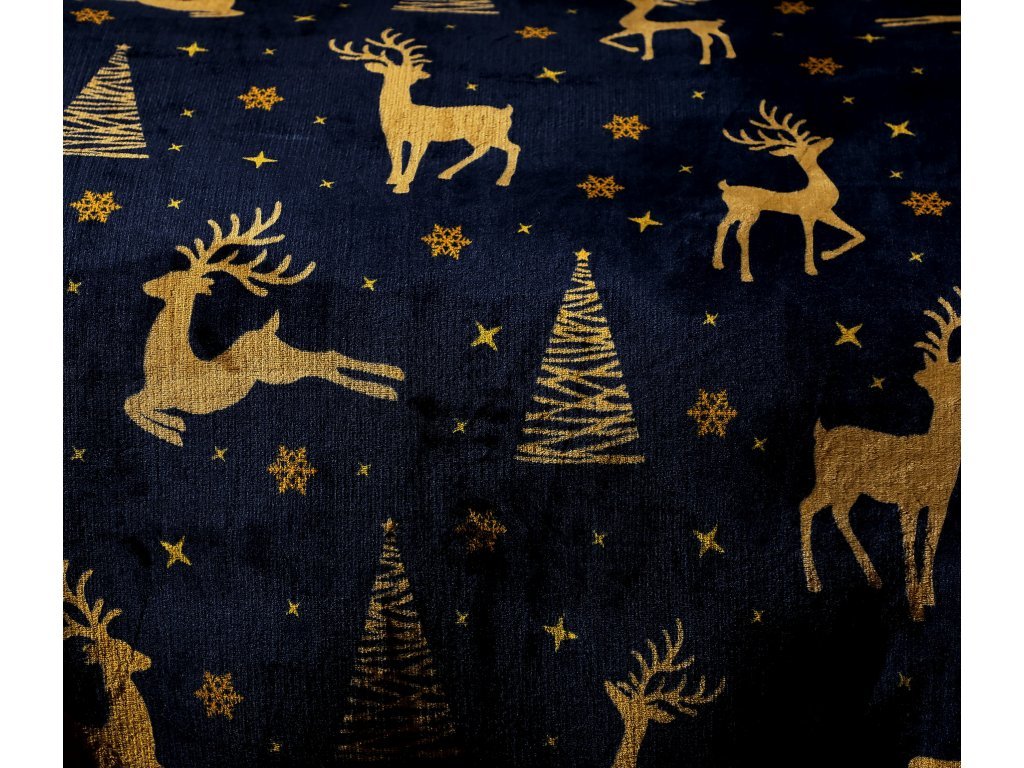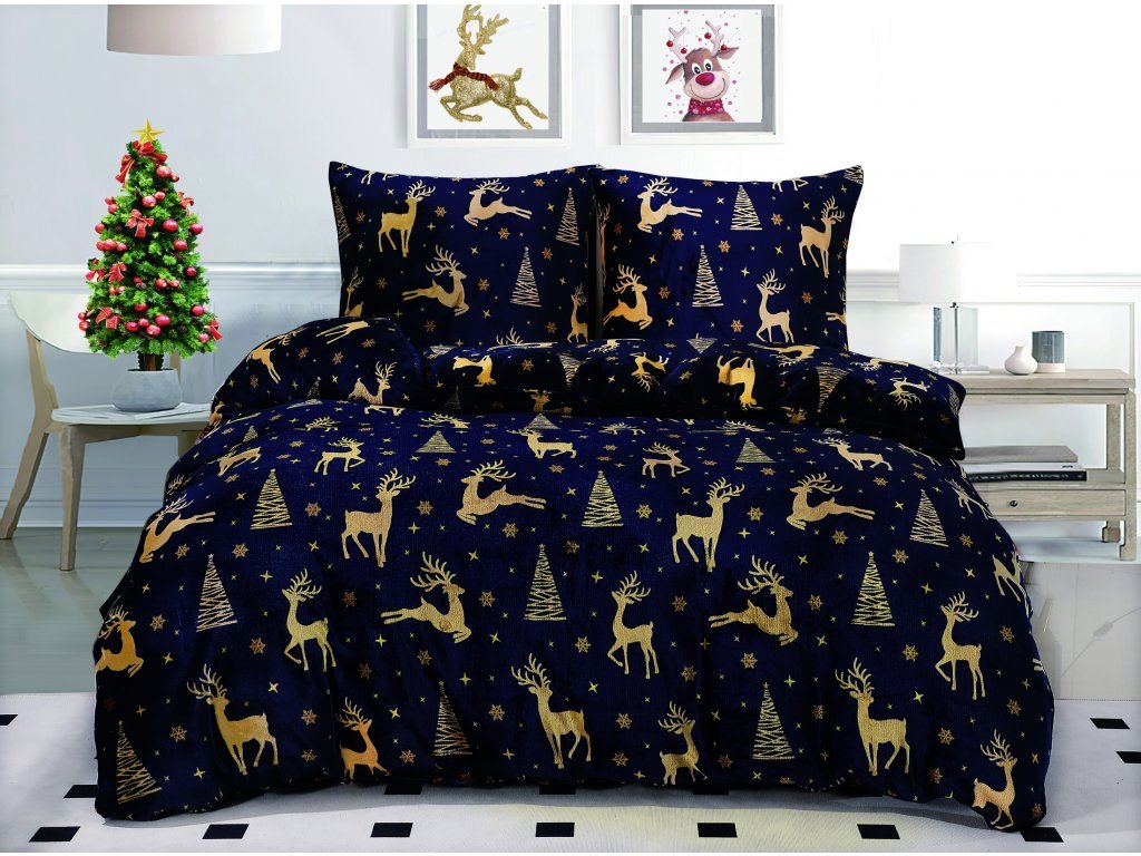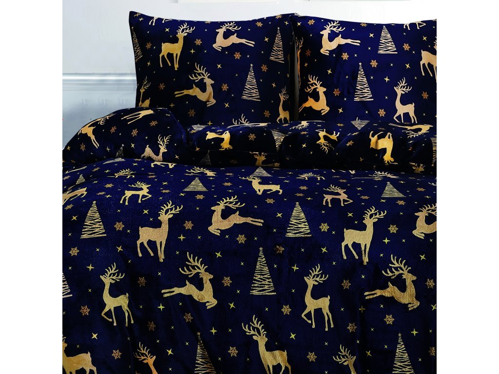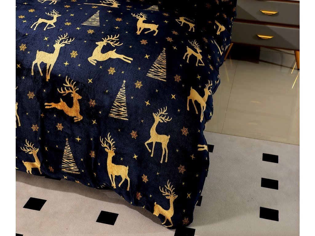 Pościel z mikropluszu GOLDEN DEER granatowa + prześcieradło 200x220 cm