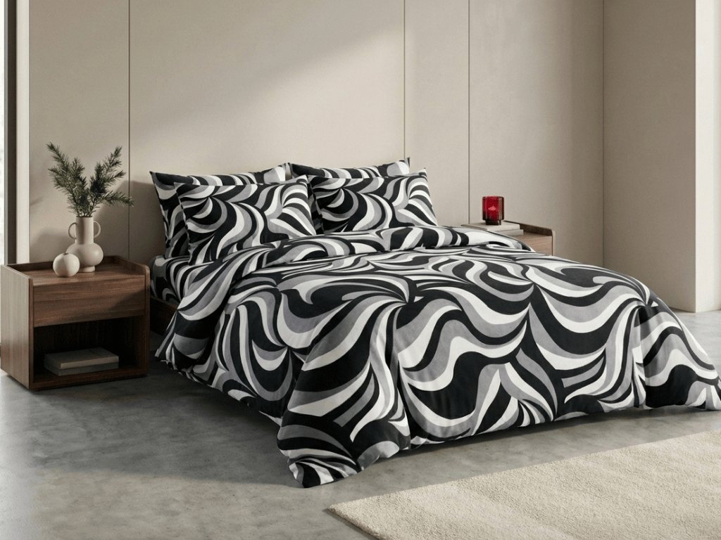 PROMOCJA Pościel z mikropluszu ILLUSIONS czarno-szara II jakość