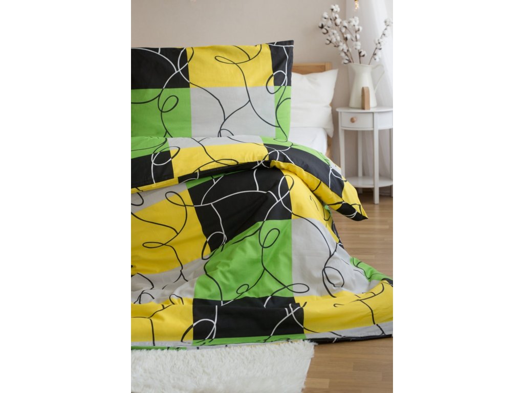 Pościel z polibawełny na 2 łóżka CHESS LIME, kolorowe