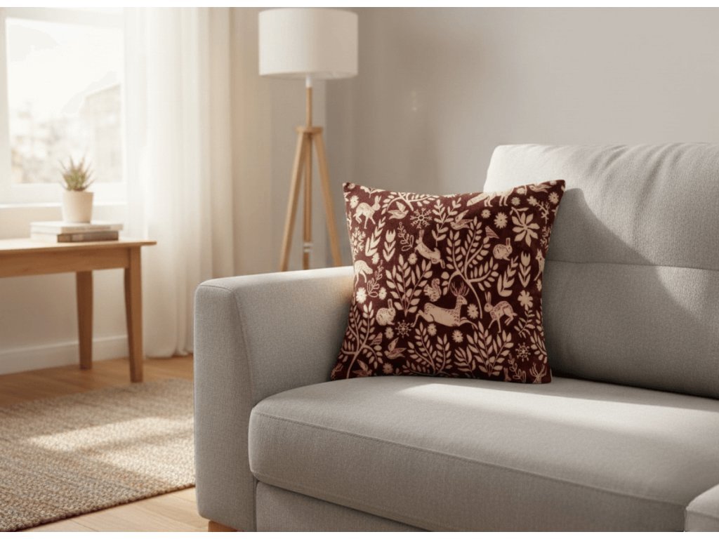 Mikropluszowa poszewka na poduszkę LEŚNE ZWIERZĘTA 45x45 cm, brązowy