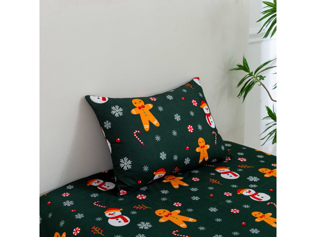 Poszewka na poduszkę z mikrofibry SNOWMAN AND GINGERBREAD 50x70 cm, zielona