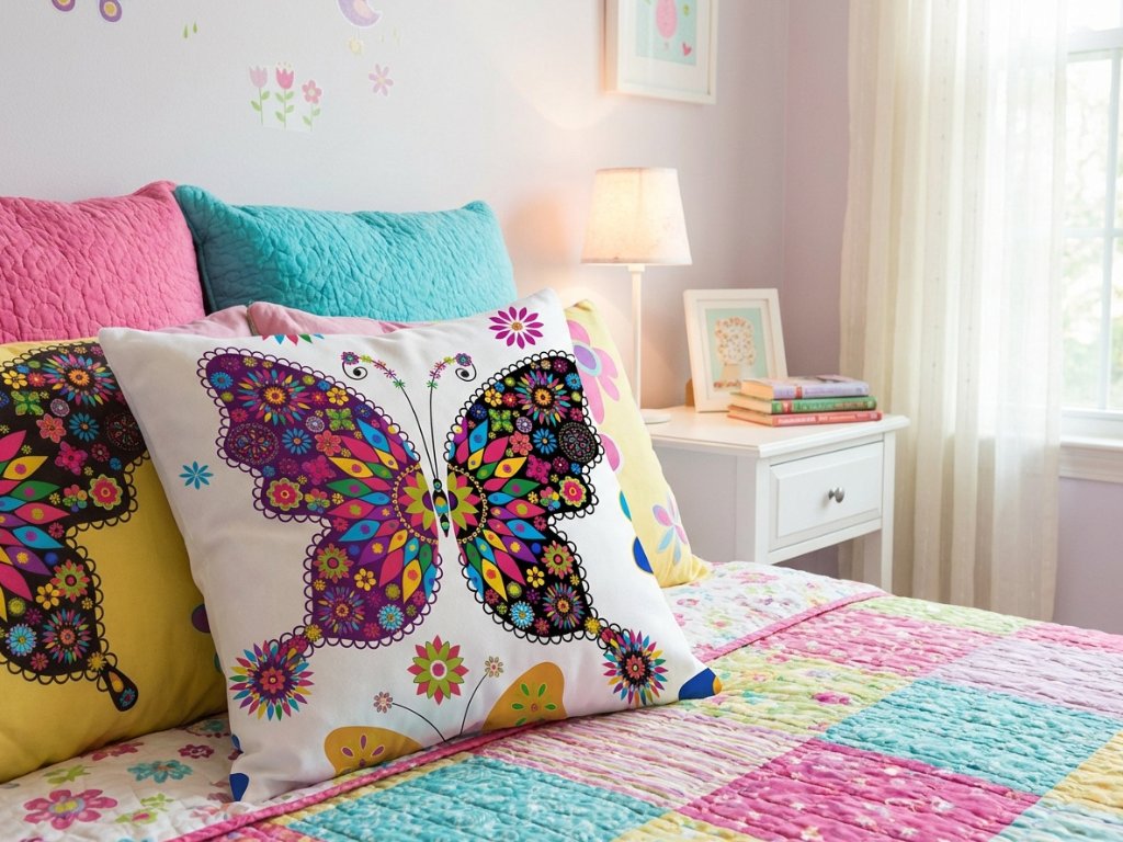 Poszewka na poduszkę z mikrofibry KOLOROWY MOTYL 45x45 cm, biały