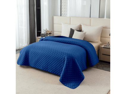 Narzuta na łóżko ze wzorem LANTA, ciemnoniebieska