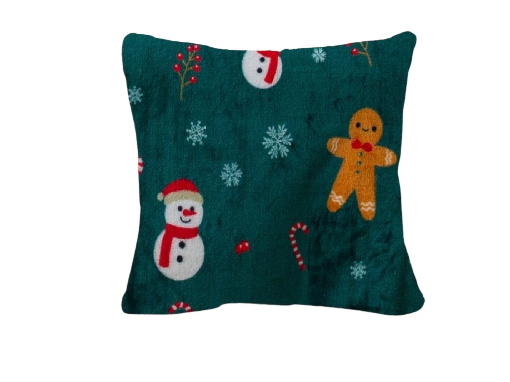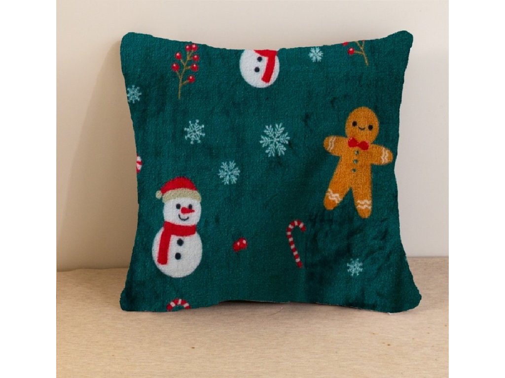 Poszewka z mikropluszu na poduszkę SNOWMAN AND GINGERBREAD 45x45 cm, zielona