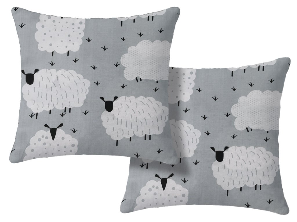 Zestaw 2 sztuk dekoracyjnych poszewek WHITE SHEEPS 45x45 cm, szary.