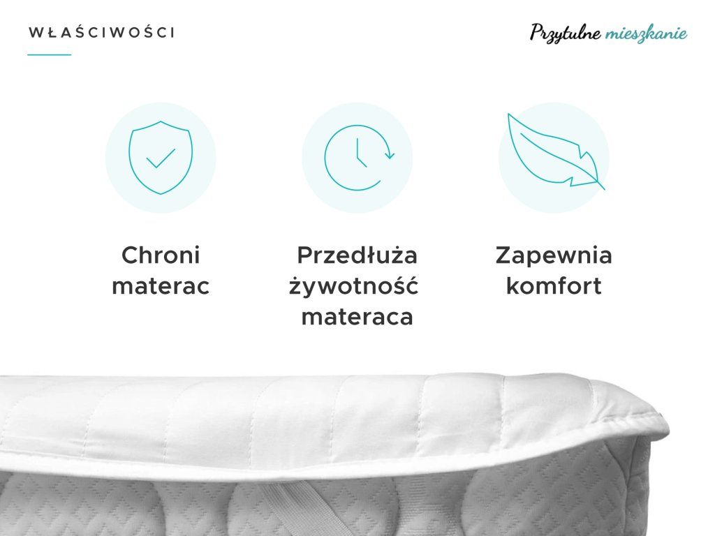 Ochrona materaca to rzecz ważniejsza niż myślisz. Każdy człowiek, czy to dziecko, czy dorosły, poci się z natury. W nocy wypacamy do litra potu, który wnika w prześcieradło i rdzeń materaca. Ochraniacz na materac zwiększy ogólną higienę łóżka. Dodatkowo chroni przed uszkodzeniami mechanicznymi, zabrudzeniami, roztoczami, potem i moczem. Jest to świetny pomocnik do łóżeczek dziecięcych lub pierwszych łóżek. Swe miejsce znajdzie także u dorosłych jako ogólne zabezpieczenie materaca, dla seniorów lub przewlekle chorych, którzy muszą leżeć w łóżku. Wodoodporny ochraniacz tworzy ochronną i nieprzepuszczającą płynów warstwę. Nie musisz się martwić o spanie na ochraniaczu, górna jego warstwa wykonana jest z delikatnej dla skóry i miłej w dotyku mikrofibry.