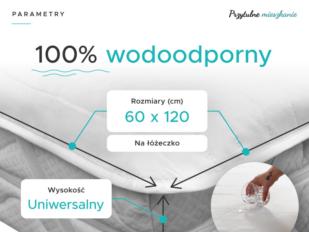 Nieprzemakalny ochraniacz na materac PIKOWANY do łóżeczka 60 x 120 cm