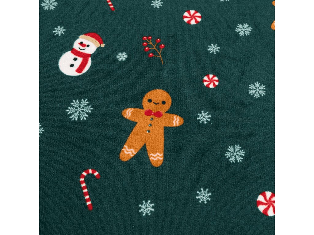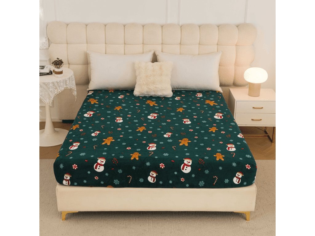Prześcieradło z mikropluszu SNIEŻNY CZŁOWIEK I PIERNIK 160x200 cm zielone