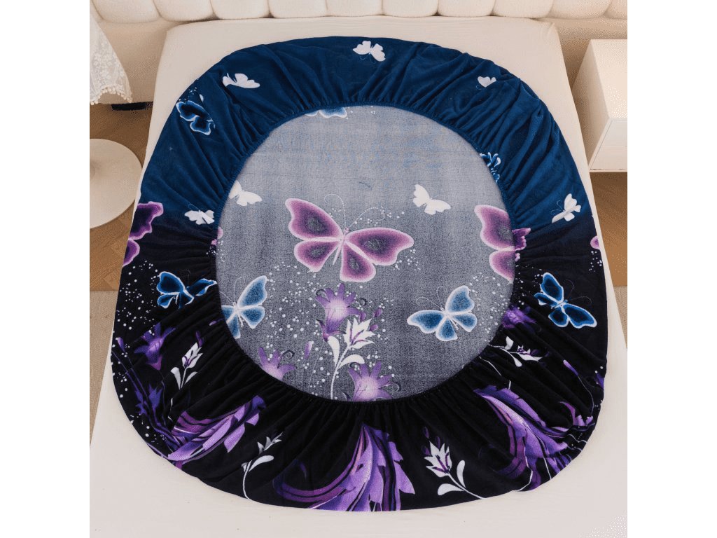 Prześcieradło z mikropluszu VIOLET BUTTERFLY 160x200 cm ciemnoniebieskie
