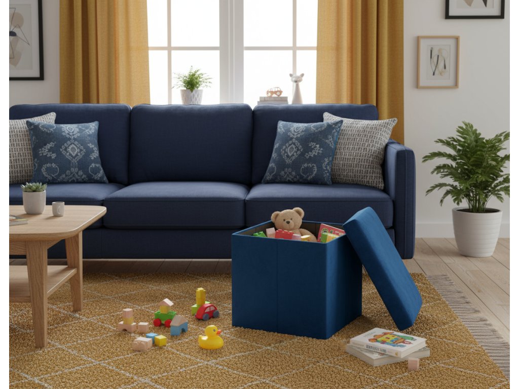 Niewiele dodatków do skandynawskiego wnętrza jest tak wszechstronnych jak puf. Można go używać jako stolik, podnóżek, miejsce na drobiazgi lub siedzenie podczas licznych odwiedzin. Niebieski składany taboret CUBEXO VELVET M jest idealny także do małych mieszkań. Puf można łatwo złożyć i rozłożyć w razie potrzeby. Dzięki swoim wymiarom można go schować do szafy lub garderoby.