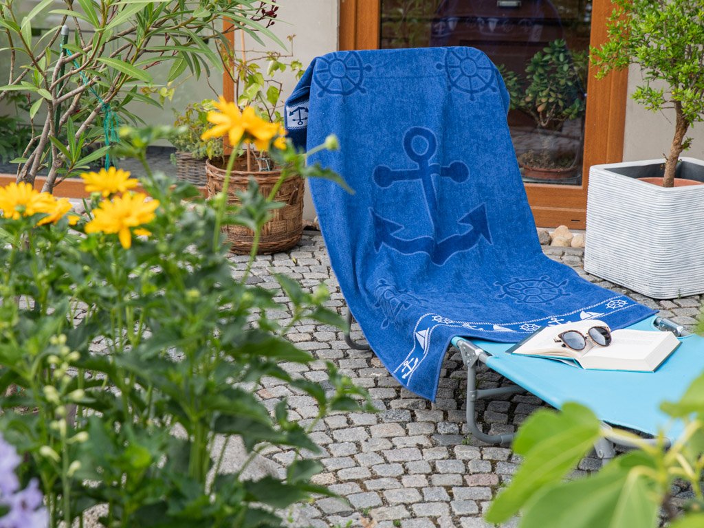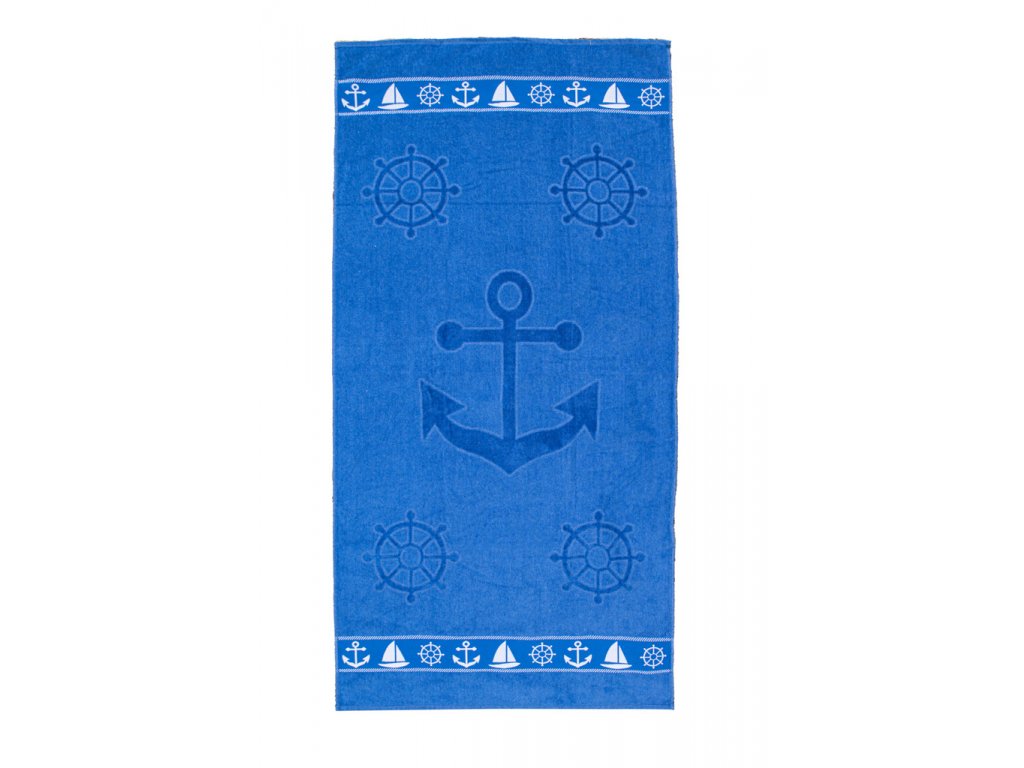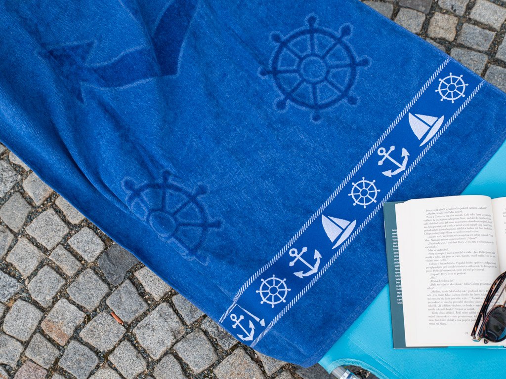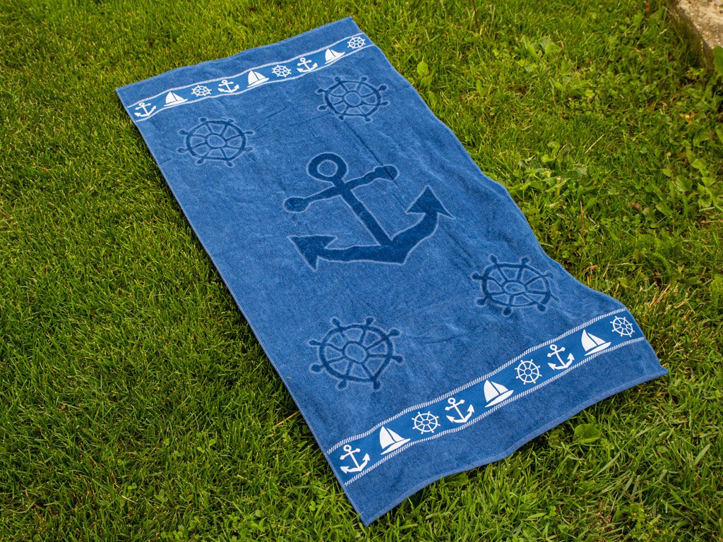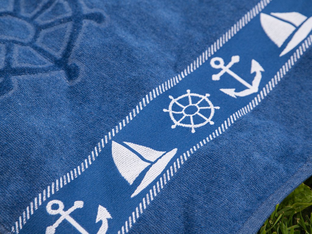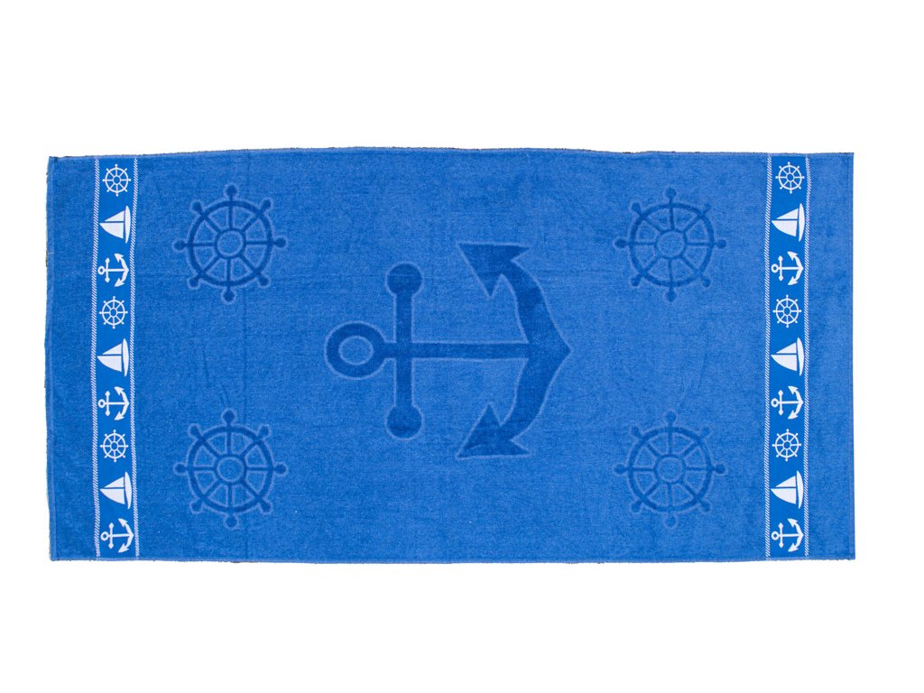 Ręcznik plażowy KOTWICA I KOŁO STEROWE niebieski