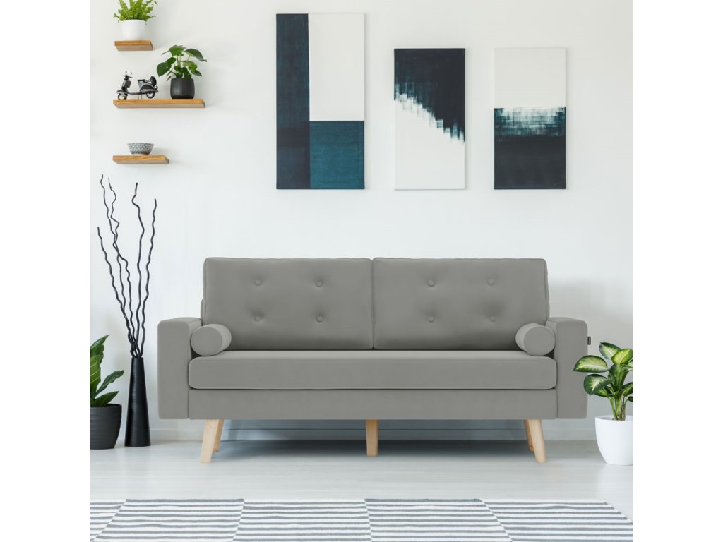 Szara sofa 3-osobowa MANDI VELVET