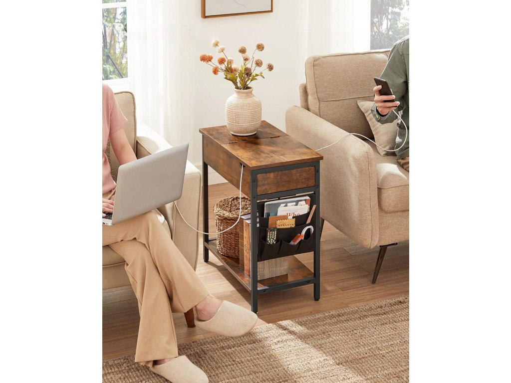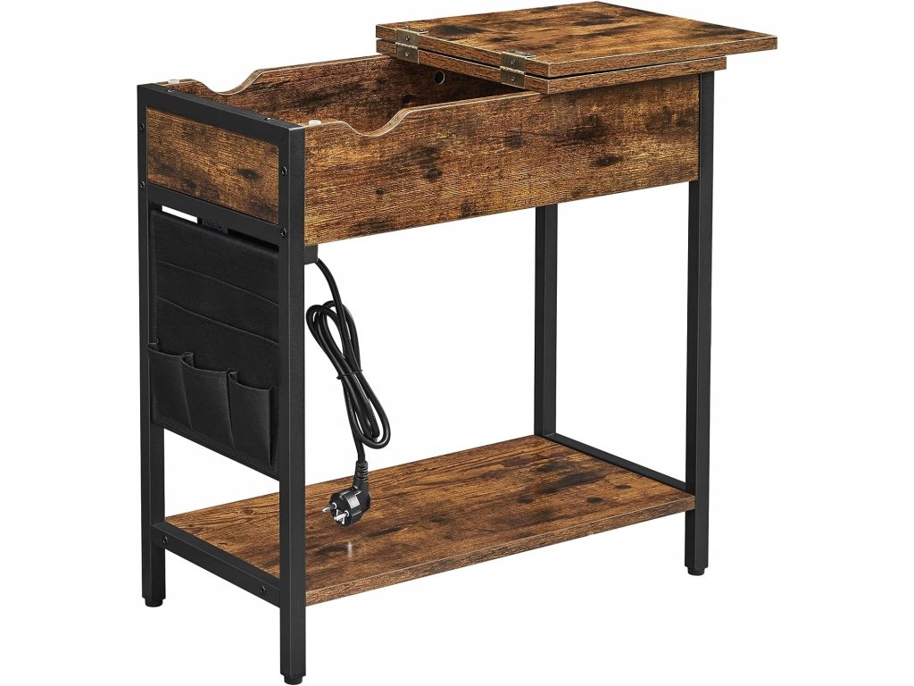 Stolik boczny z przedłużaczem i ładowarkami TAYLOR 60x31,5 cm, rustykalny brązowy
