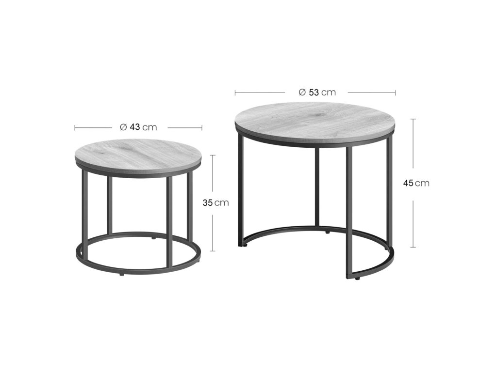 Te stoliki idealnie nadają się jako nocne stoliki w sypialni, gdzie zapewniają wystarczającą przestrzeń na lampkę, książki czy budzik. W salonie mogą służyć jako stylowe stoliki kawowe na odłożenie kawy, dekoracji lub magazynów. Dzięki nowoczesnemu designowi i kompaktowym rozmiarom łatwo dopasują się nawet do mniejszych przestrzeni, takich jak balkony czy tarasy, tworząc przytulne miejsce do relaksu. Kombinacja drewna i metalu doda elegancki i nowoczesny wygląd Twojemu wnętrzu.