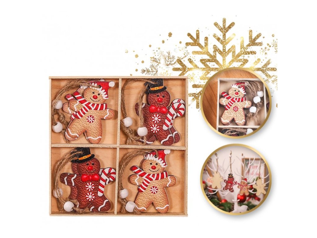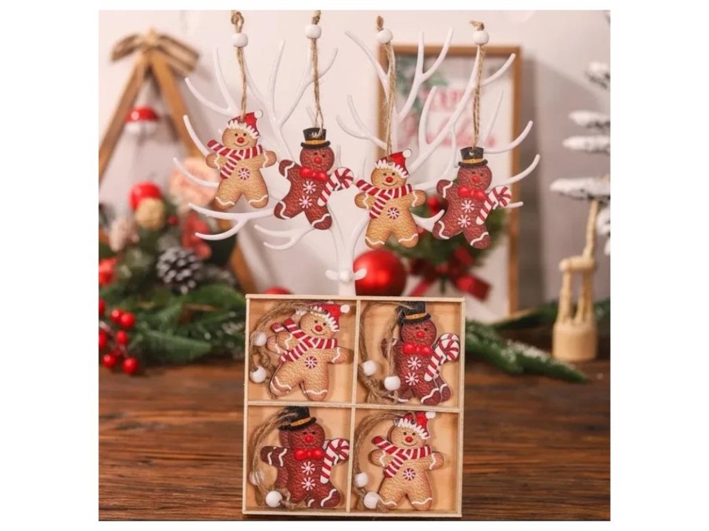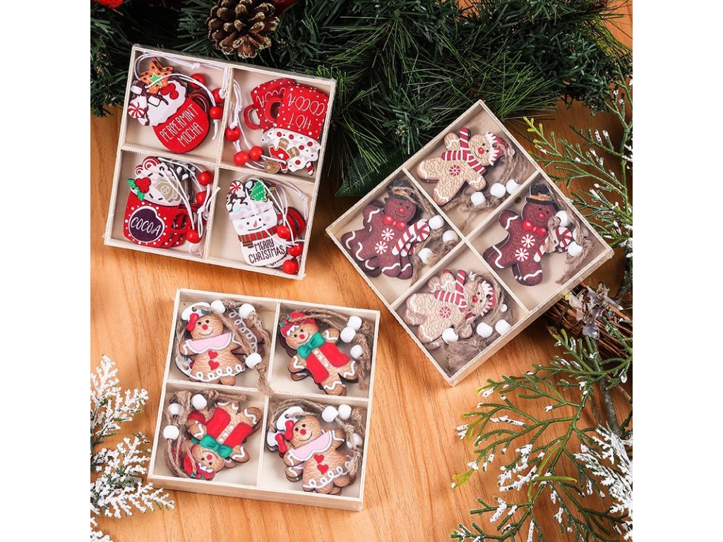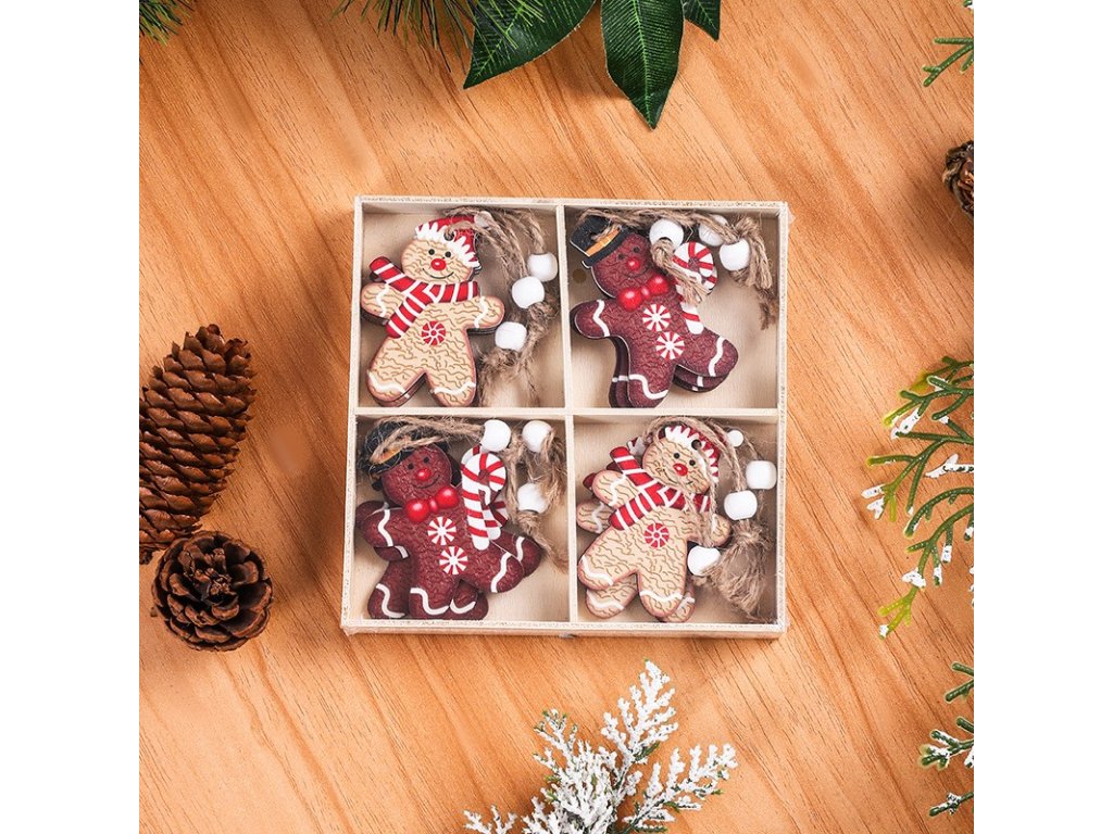 Zestaw świątecznych ozdób drewnianych GINGERBREAD, 12 szt