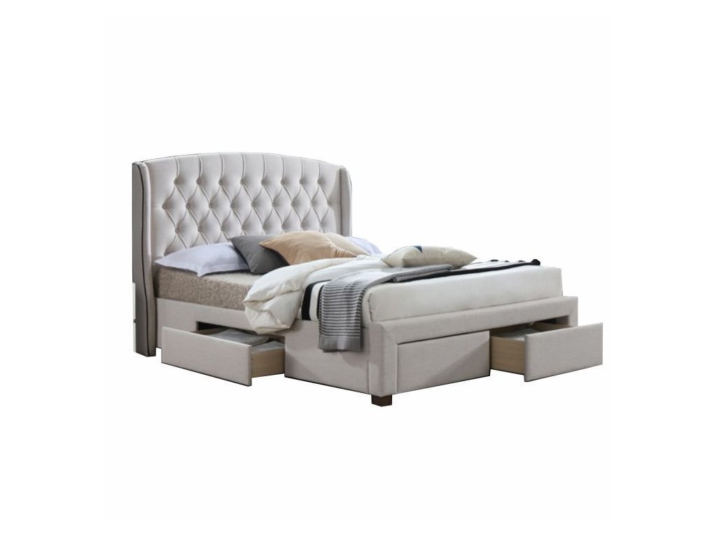 Kremowe łóżko z miejscem do przechowywania AKANA 180 x 200 cm